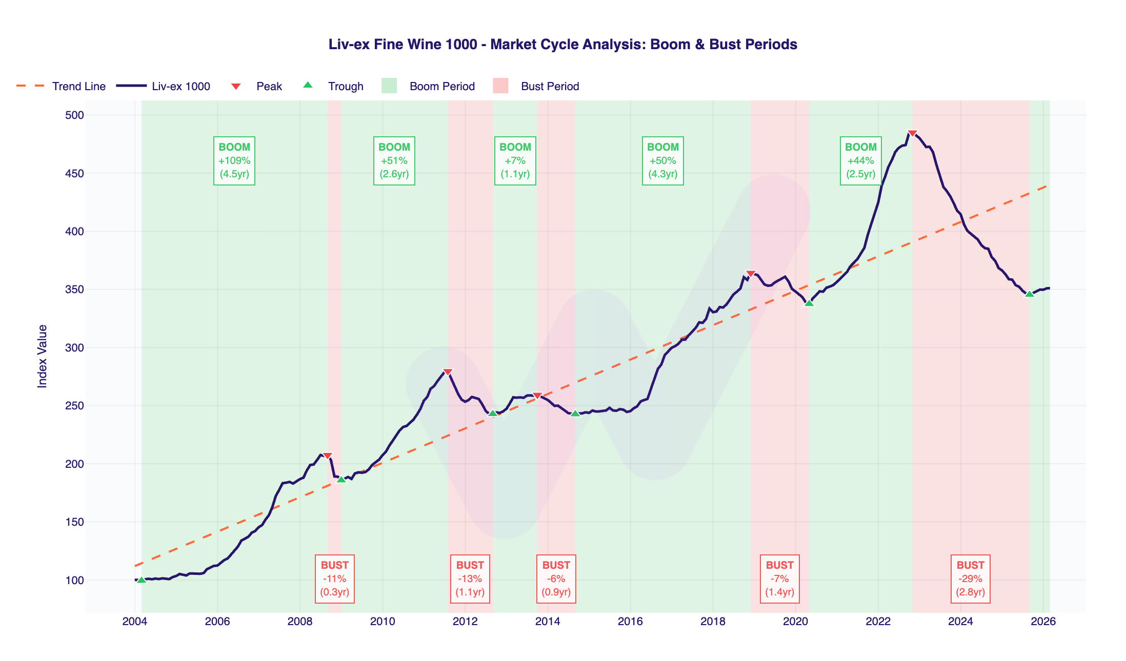 Since its peak in late 2022, the Liv-ex Fine Wine 1000 has declined approximately 29% over the course of 2.8 years - the most sustained drawdown recorded since the index's inception in 2004.