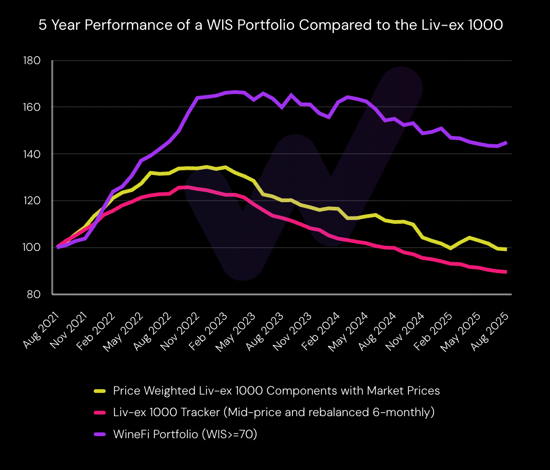 Conviction-Only Portfolio: Every wine selected meets the WIS ≥72 threshold, a proven signal of consistent alpha generation.