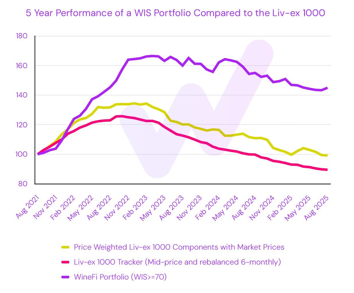 Portfolio Construction: Only wines with a WineFi Investment Score (WIS) ≥72 are included. Permitted Investment is globally diversified, informed by quantitative analysis and verified by the WineFi Investment Committee.